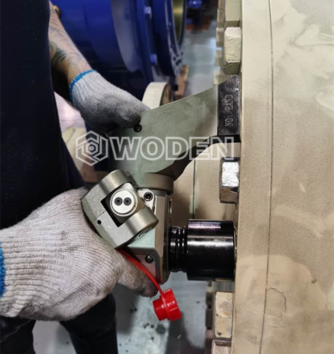 液壓扳手對螺栓進行緊固情景